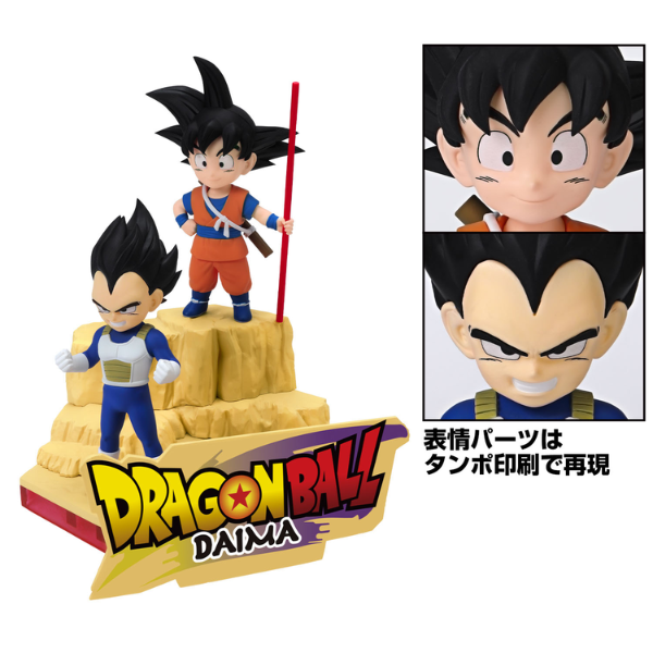 First Official DAIMA Designs: Features the unique, adorable "mini" character designs of Son Goku and Vegeta directly from the upcoming Dragon Ball DAIMA anime series.