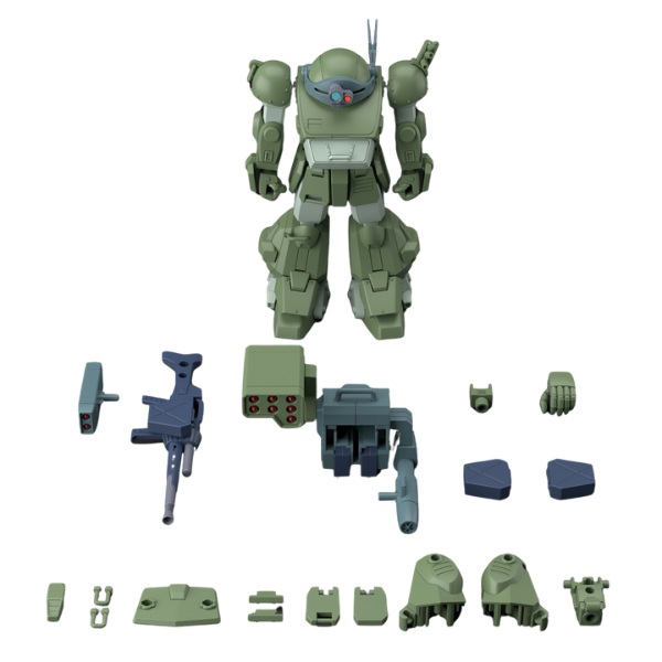 Includes Signature Weaponry: Comes equipped with the Scopedog Turbo-Custom's essential armaments, such as the heavy machine gun and solid shooter, allowing for the recreation of memorable combat scenes from the anime.