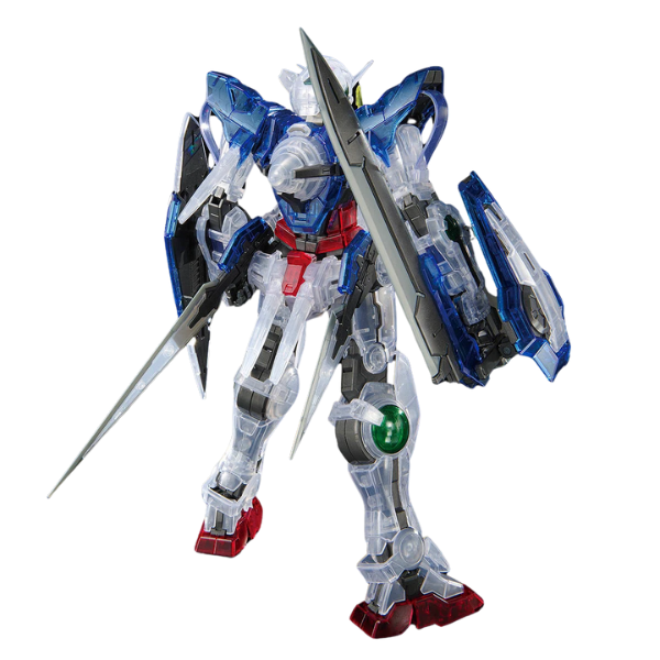 MG 1/100 Gundam Exia [Clear Color] features clear armor, full GN weapons, and high articulation for dynamic display builds.
