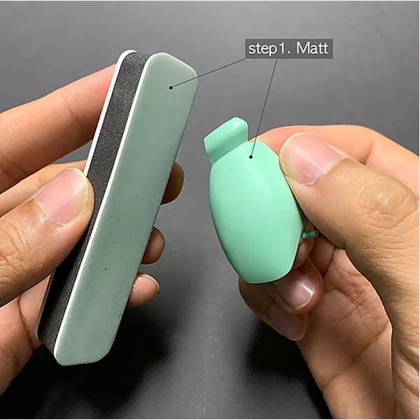 Firstly buff with the unlabelled side for a matte finish and to prepare for balance side for polishing and creating a glossy finish.