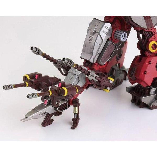 • The Crusher Vice on the front right leg can be opened and closed. The Small-Bore Particle Beam Cannon attached to the head can be held within the hands of the Zoid for fans to enjoy.