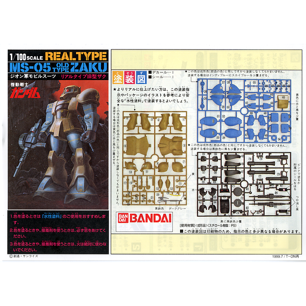 This is the "real type" variation of Bandai's Zaku kit. Comes with extensive decals. Originally a mid-1980s release.
