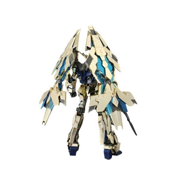 The 1/100 MG Unicorn Gundam 03 Phenex (Fenix) is a high-quality model kit of the titular mobile suit from the anime series Mobile Suit Gundam Unicorn. It is part of Bandai's Master Grade (MG) line, known for its detailed and accurate representations of Gundam and other anime mecha. This kit features a unique gold-colored design and a variety of impressive details and features.