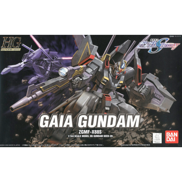The 1/144 HG Gaia Gundam model kit features: Highly detailed and articulated parts for assembling the Gaia Gundam mobile suit. Beam rifle, beam saber, and shield accessories. Transformation capability from Mobile Suit (MS) mode to Mobile Armor (MA) mode. Clear effect parts for blades and beam sabers.