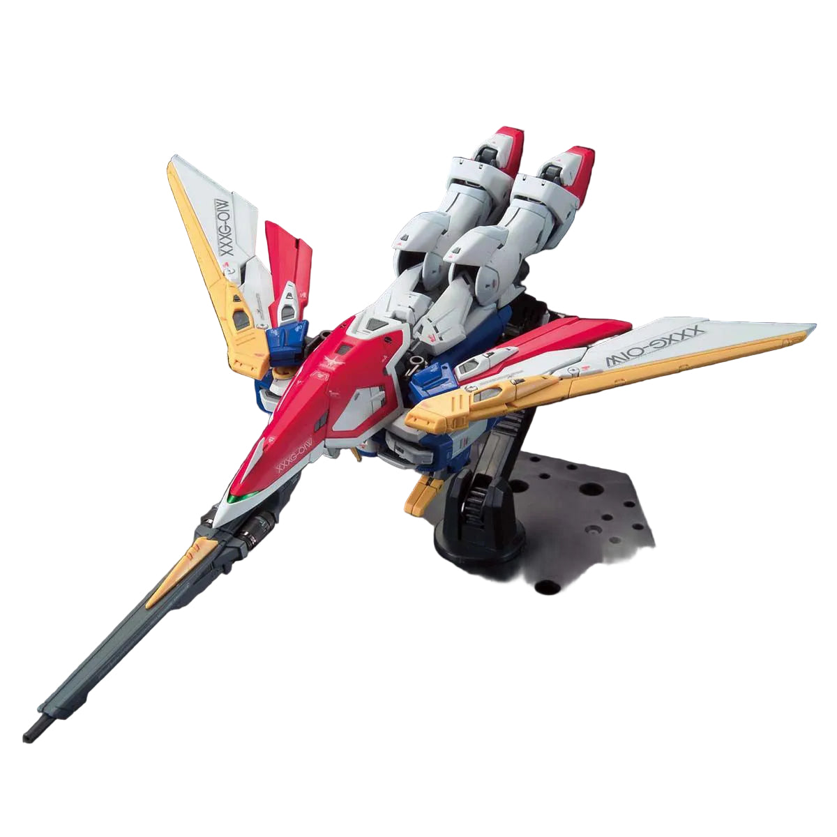 The build centres on the advanced Real Grade inner frame that provides Master Grade-level articulation in 1/144 scale. You get the Buster Rifle, shield, beam saber, and articulated wing system with MS joints for dynamic posing. The colour separation delivers the Wing Gundam's white, blue, red, and yellow scheme with minimal painting needed. The engineering features full transformation to Bird Mode without parts swapping and articulated wings that fold and spread for flight configurations. The kit includes realistic water slide decals and action base support parts for aerial display poses.