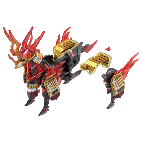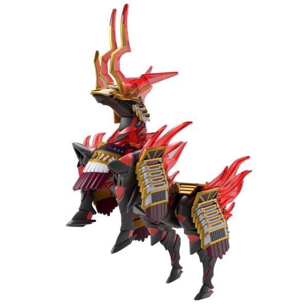 This highly detailed model kit features the luxurious armour and saddle parts of Nobunaga's iconic steed from the SD Gundam World Heroes anime. The horse's legs are posable, and his back expands so that up to two heroes (sold separately) can ride him. A built-in axis is compatible with an action base (sold separately), too.