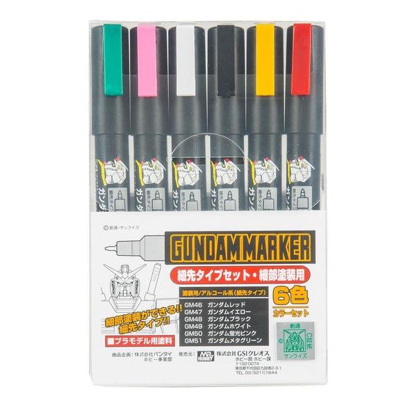 This is a set of thin-point Gundam Markers that are specifically designed for getting details in hard-to-reach places like the eyes and verniers! The set includes the traditional red, white, blue, yellow, and pink Gundam markers (except with a finer point) along with a new colour "Meta Green" that isn't available separately.