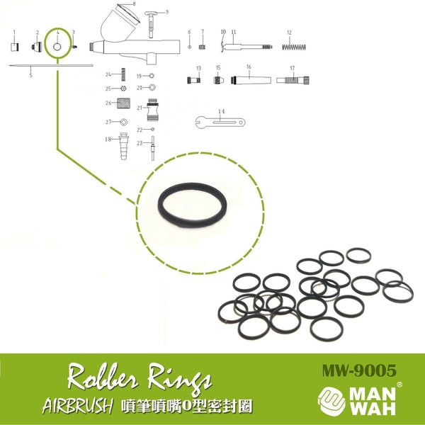Manwah MW-9005 is a replacement O Rings (20 pieces). Will fit MW-9001 airbrush.