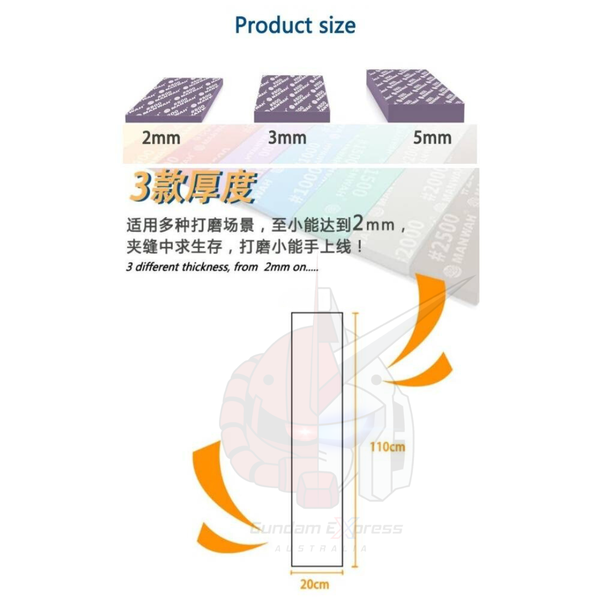 Manwah Sanding Sponge Set 1000g - 2500g (20mm x 110mm x 5pcs, thickness: 5mm)