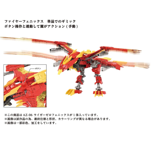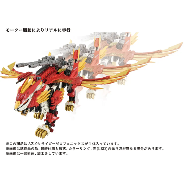 Takara Tomy's AZ-06 Liger Zero Phoenix is a motorized, LED-lit Zoid with flapping wings. A 40th-anniversary model.