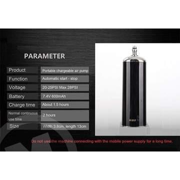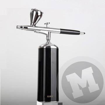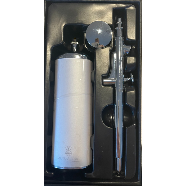If you are wanting an airbrush with compressor with pretty much zero footprint and ultimate portability then this is just for you. This is the smallest all in one airbrush/compressor combo on the market. It is simple to use, rechargeable, making it one of the most versatile tools you'll ever own. There is an auto button on the base of the compressor for adjusting the airflow delivered. There are 2 levels. Push the button once to switch between level. Level.1 = 8L up to 27psi, Level.2 = 6L up to 23psi