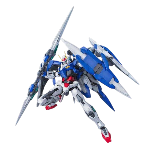 The Bandai 1/100 MG 00 Raiser Celestial Being GN-0000+GNR-010 is a highly detailed and articulated model kit. It features a variety of intricate details, such as panel lines, rivets, and hatches. The kit also includes a wide range of moveable joints, allowing you to pose it in any dynamic pose you can imagine.