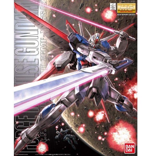 The 1/100 MG Force Impulse Gundam model kit includes the following: Plastic model parts: These are the individual pieces that make up the model. Instructions: These tell you how to assemble the model. Decals: These are stickers that you can add to the model to add detail. Action base: This is a stand that you can use to display the model. Accessories: These include the model's weapons and other equipment.