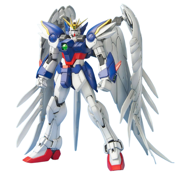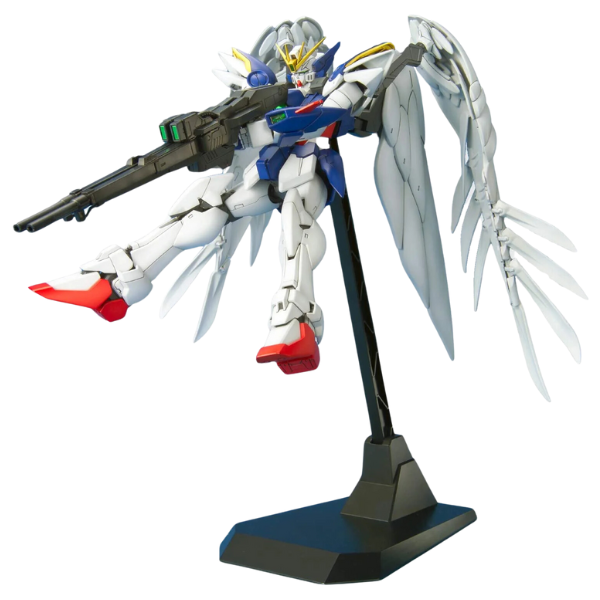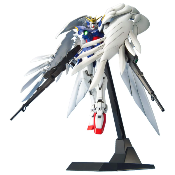 The 1/100 MG Wing Gundam Zero Endless Waltz Ver. kit includes: Wing Gundam Zero model kit parts Twin Buster Rifles Beam Sabers Shield Beam saber effect parts Stickers Instructions