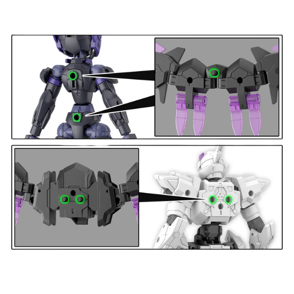 Movable Multi-Joint System: Each segment of the wing is equipped with articulated connection points, allowing for expansive, expressive posing. The set also includes specialized joint parts that ensure seamless compatibility with the various 3mm hardpoints found across the entire 30MM and HG model lines.