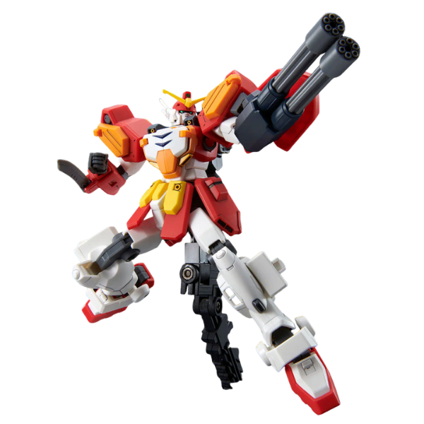 This kit is an arsenal in a box. It comes with its signature twin Gatling cannons, which are the main focus. It also features a beam Gatling gun that can be held in one hand, an army knife that can be folded out from the right arm, and opening missile hatches on the shoulders, legs, and chest to recreate its "full burst" attack from the anime.