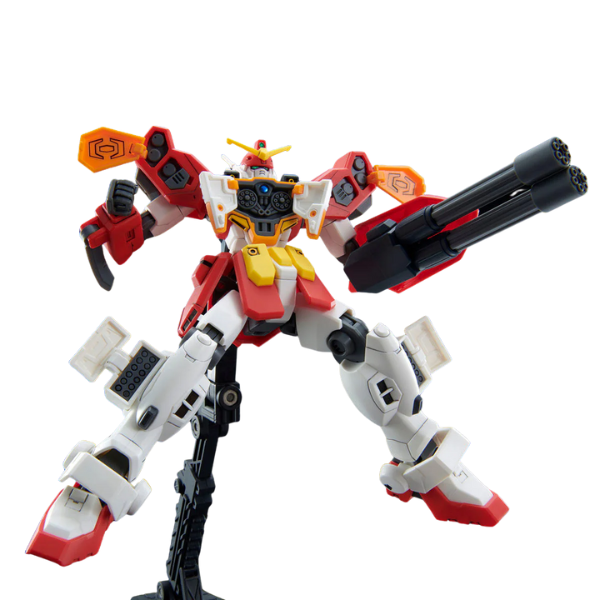 Despite its bulky appearance and heavy armaments, the kit features very good articulation, thanks to its modern High Grade After Colony (HGAC) engineering. The joints in the shoulders, arms, legs, and torso allow for a wide range of motion, letting you pose it dynamically in its most iconic firing stances. The Gatling cannons, while large, are designed to be held securely, and the arm joints are strong enough to support their weight.