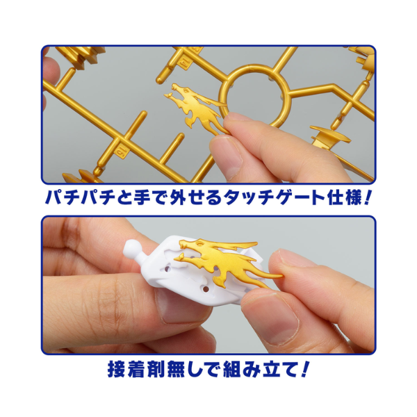 Gunpla (plastic model kits) are designed to be built and displayed without the need for painting. Kits are molded in different colours replicating the colours of the actual mecha from the Mecha series. A technique called colour separation, where multiple parts of the model are molded in different colours on the same sprue is also used. Mecha kits often include stickers or water-slide decals that can be applied to the model to enhance its appearance. Some Gunpla kits come with pre-painted parts or parts with pre-applied details, such as metallic or translucent finishes.