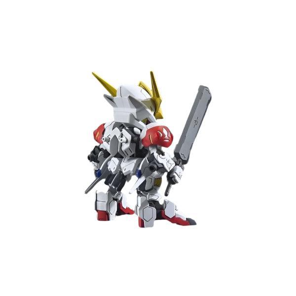 The SDBB Gundam Barbatos Lupus DX is a highly detailed, well-articulated, and affordable Super Deformed (SD) model kit from Bandai. It comes with a variety of accessories, including a sword mace, twin maces, an arm-mounted cannon, arm-mounted rocket cannons, and an Isaribi.