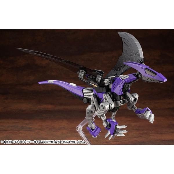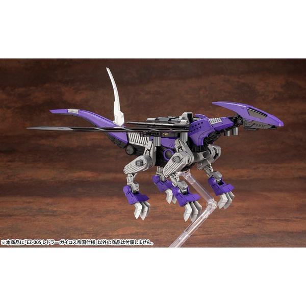 2. Intricate Details and Anime-Accurate Design: The 1/72 ZOIDS EZ-005 Redler Guyros Empire Ver. model kit meticulously captures the Redler's iconic appearance, showcasing its distinctive dragon-like features, intricate armor plating, and signature purple color scheme. The model features refined details, such as textured skin, prominent claws, and sharp teeth, bringing the Zoid to life in remarkable detail.