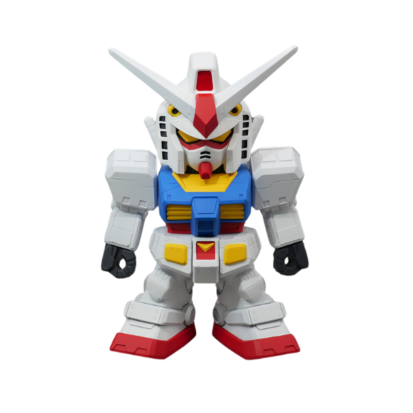 Imagine this, a chubby Gundam, squished into the irresistibly huggable proportions of an SD (Super Deformed) hero. Big eyes sparkle with determination, stubby limbs wiggle with anticipation, and that iconic V-fin antenna stands tall, even in miniaturized glory.